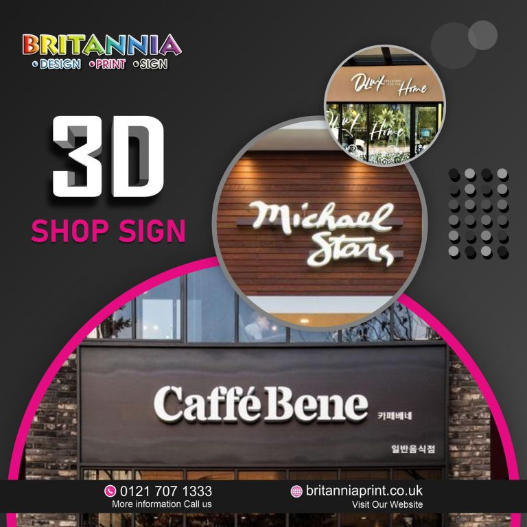 britanniaprint signs refer to the shop’s exterior sign. In addition, it’s the last thing people see before walking into your store. It’s more of a case of “first impressions lasting forever.” Because of its importance in drawing customers, it is an absolute must-have for any shop or company. Because of this, bright and LED signage have become increasingly popular in recent years.